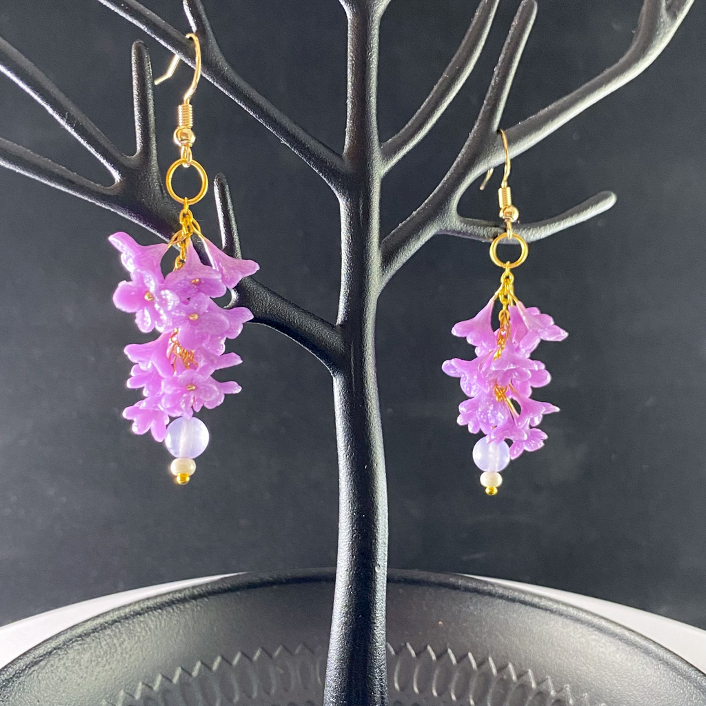 Lovingly sculpted petal by petal these lovely floral earrings are one-a-kind treasures. Featuring hand sculpted flowers on elegant gilded frames adorned with crystals, these lovely earrings shine with iridescence and gold colored accents. I design all my clay earrings with beads and other materials hand picked to coordinate, so no two sets of earrings are exactly the same. Whether you want to channel a bit of spring glamor or give someone a lovely handmade gift, you can’t go wrong with these floral sculpted clay earrings.